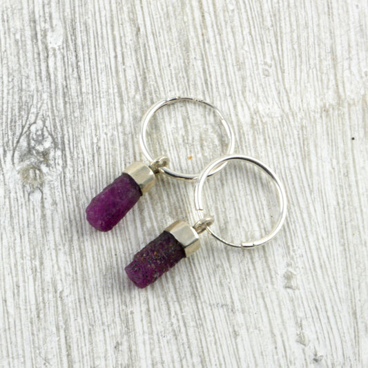 BOUCLES D'OREILLES SAÏAN - Argent 925 et Rubis bruts