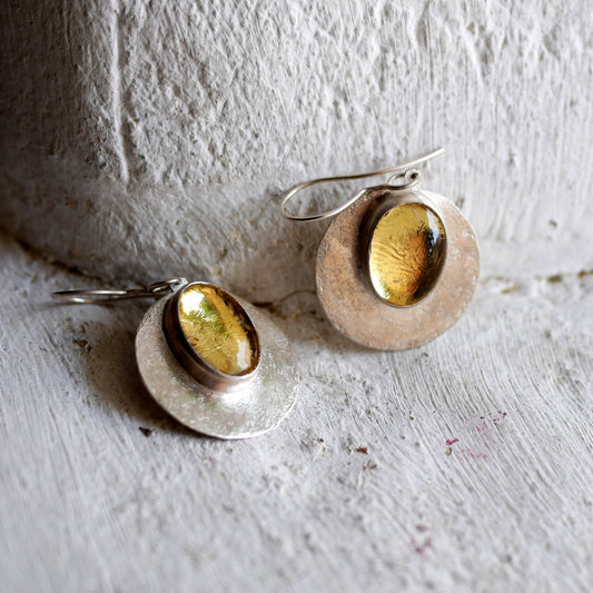 BOUCLES D'OREILLES SELENE - Argent 925, Cristal & Feuille d'Or