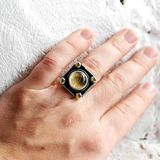 BAGUE ARGOS - Cristal, Argent 925 & feuille d'or