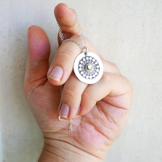 PENDENTIF AIGIS - Argent 925, Cristal & feuille d'or